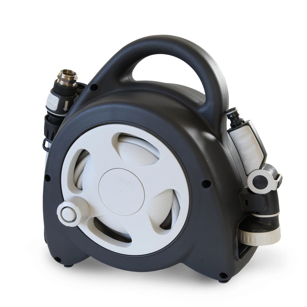 De Aqua Bag Maxi slanghaspel is het beste hulpje voor in de tuin. Hij is zeer compact, maar beschikt toch over een 16,5 meter lange flexibele slang. De slanghaspal kan gedragen worden, maar het is ook mogelijk om hem op een centrale plek neer te zetten. Bij de slanghaspel zitten ook 2 soft touch slangkoppelingen, een ergonomische spuitkop met 8 standen en een 3/4 koppeling die geschikt is voor de meeste soorten kranen.