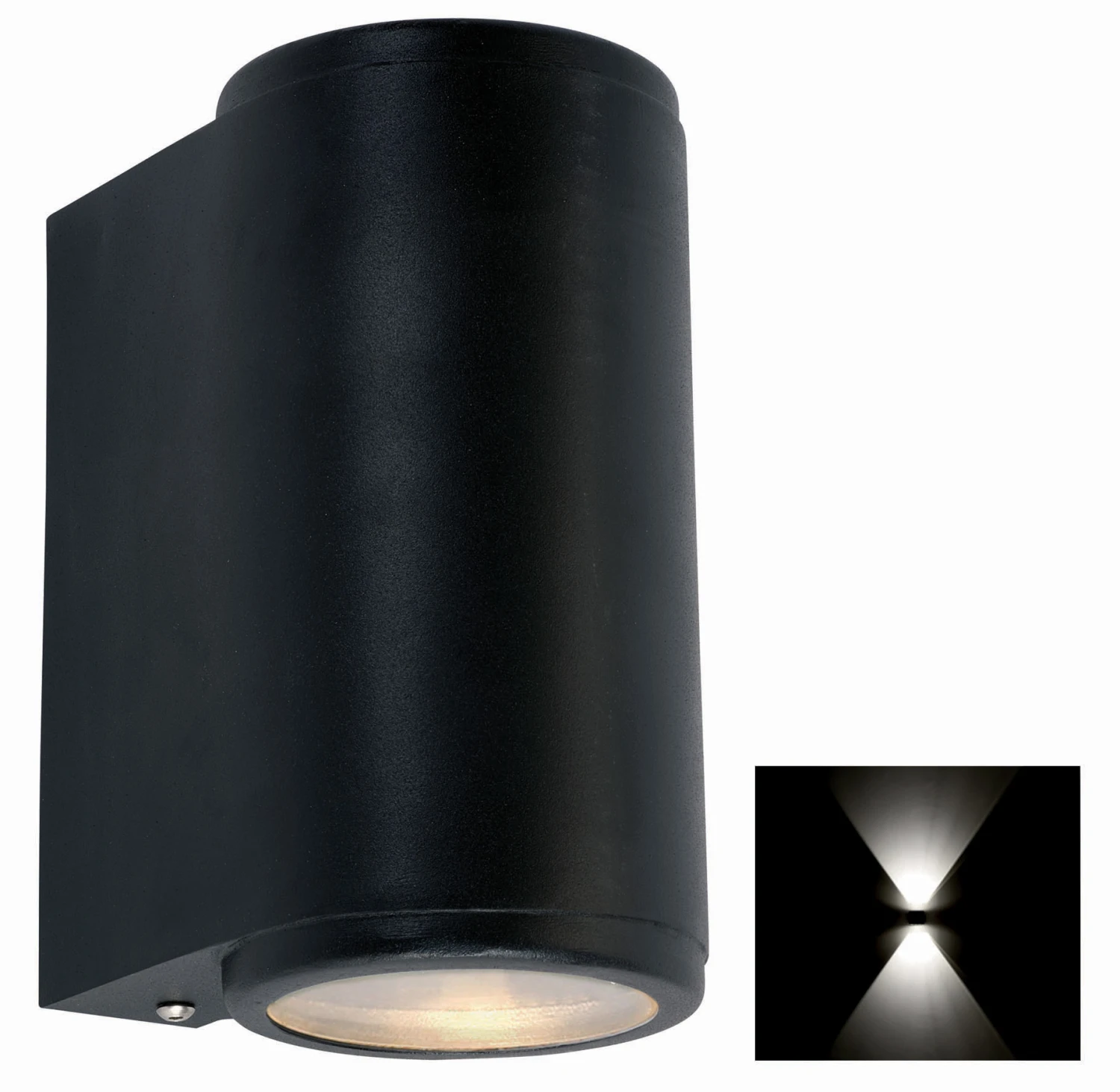In de serie Gevelspot hebben we een breed aanbod van up/down light gevelspots. Deze gevelspot is een robuuste gevelspot met een zeer solide constructie! En met een onderscheidende vormgeving. De rechthoekige muursteun gaat naadloos over in een ronde behuizing. Deze gevelspot is een up/down-lighter welke aan twee zijdes het licht sfeervol over de gevel verspreidt. De GU-10 fitting is geschikt voor een led lichtbron. De gevelspot geeft sfeervolle lichteffecten over de gevel maar is ook goed toepasbaar om de toegangsdeuren te verlichten. Deze serie armaturen kenmerkt zich door uitsluitend gebruik te maken van hoogwaardige materialen. De armaturen zijn voorzien van een speciale uv-bestendige poedercoating geschikt voor buiten toepassingen. Europese fabricage – Europese kwaliteit!