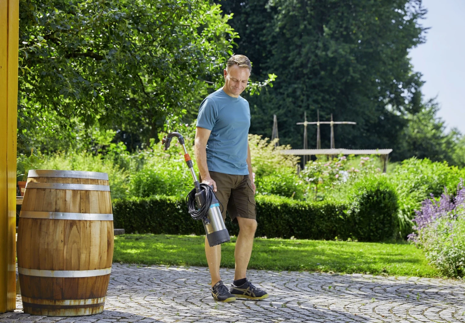 De meegeleverde regelklep helpt om de stroom aan te passen of de slang volledig te sluiten om overloop te voorkomen. Het eenvoudige transport van regenwater is erg overtuigend. De telescopische buis zorgt er niet alleen voor dat de aansluitkabel niet in contact komt met het water, maar de buis functioneert ook als een comfortabele antisliphandgreep. De regentonpomp 4700/2 inox automatic biedt uitstekende prestaties en maximaal comfort. De producten van Gardena staan voor betrouwbaarheid, kwaliteit en duurzaamheid. Als je je aankoop registreert op de site van Gardena krijg je een fabrieksgarantie van 40 maanden.