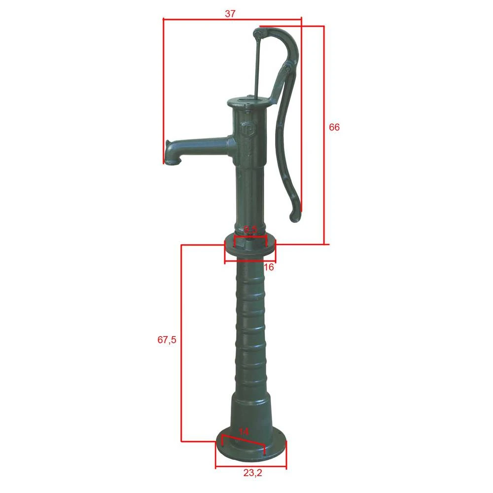 Deze groene gietijzeren handzwengelpomp heeft een nostalgische uitstraling. De zwengelpomp kan gebruikt worden om water te pompen uit een regenton, waterput of sloot. Met de rondflens is hij perfect te plaatsen op een (regen)ton, vat of de bijpassende pompstandaard (niet inbegrepen). Door middel van een zwengelpomptule (niet inbegrepen) kun je een slang aansluiten op de pomp. Hiermee kun je diepergelegen water omhoog pompen.Specificaties:Maximale zuighoogte: 5 – 6 meter