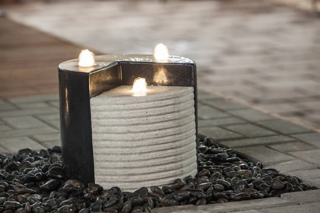 Moderne fonteinset van Heissner met Led verlichting in speelse uitvoering: 3 aan elkaar passende elementen in verschillende kleur, afmeting en uitvoering elk met LED verlichting. Incl. pomp (1000 l/u, 24 W) en accessoires. Benodigd reservoir voor deze Fonteinset “Gap” van Heissner: 90 ltr. Kabellengte: 10 m. Afmeting van de elementen: 27×33 cm, 17×27 cm en 25×30 cm.